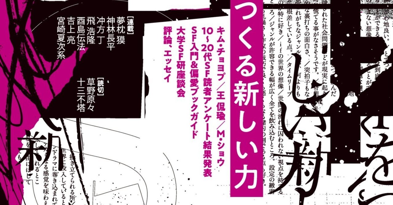 特集の他の記事も少しだけ読み始めたのですが、アンケート結果の圧強めのページから始まり(宇宙が感じられる)、テンションが上がります。橋本輝幸さんの特集解説のむすびにはぐっときましたし、大学SF研座談会や若手SF活動エッセイにはなんだか勇気づけられる。新しい力を分けてもらえる良い特集だと思います。私は週末にじっくり楽しもうと思ってます。皆様も是非!